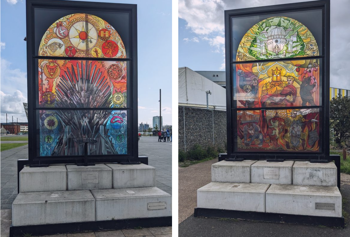 Afin de conserver un souvenir de la série Game of Thrones qui a été en partie tournée dans les studios de production de Belfast, le Tourisme Irlandais a installé 6 vitraux le long de la Lagan. Ils représentent les principales scènes et principaux personnages de la série qui sont regroupés par thème sur ces « Glass of Thrones ».