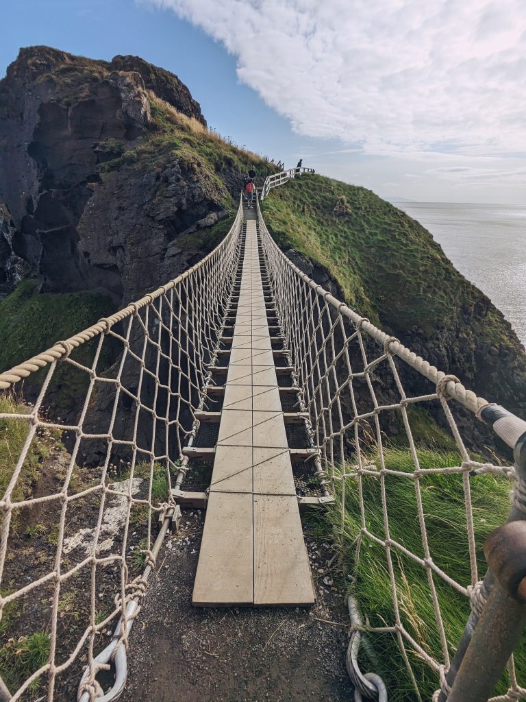 Le Carrick-a-Rede Rope Bridge est un pont suspendu à 30 mètres au-dessus de l’océan. Il a une longueur de 20 mètres et relie la côte irlandaise à l’île de Carrick-a-Rede.