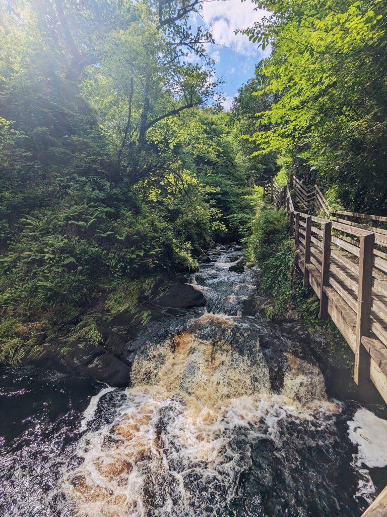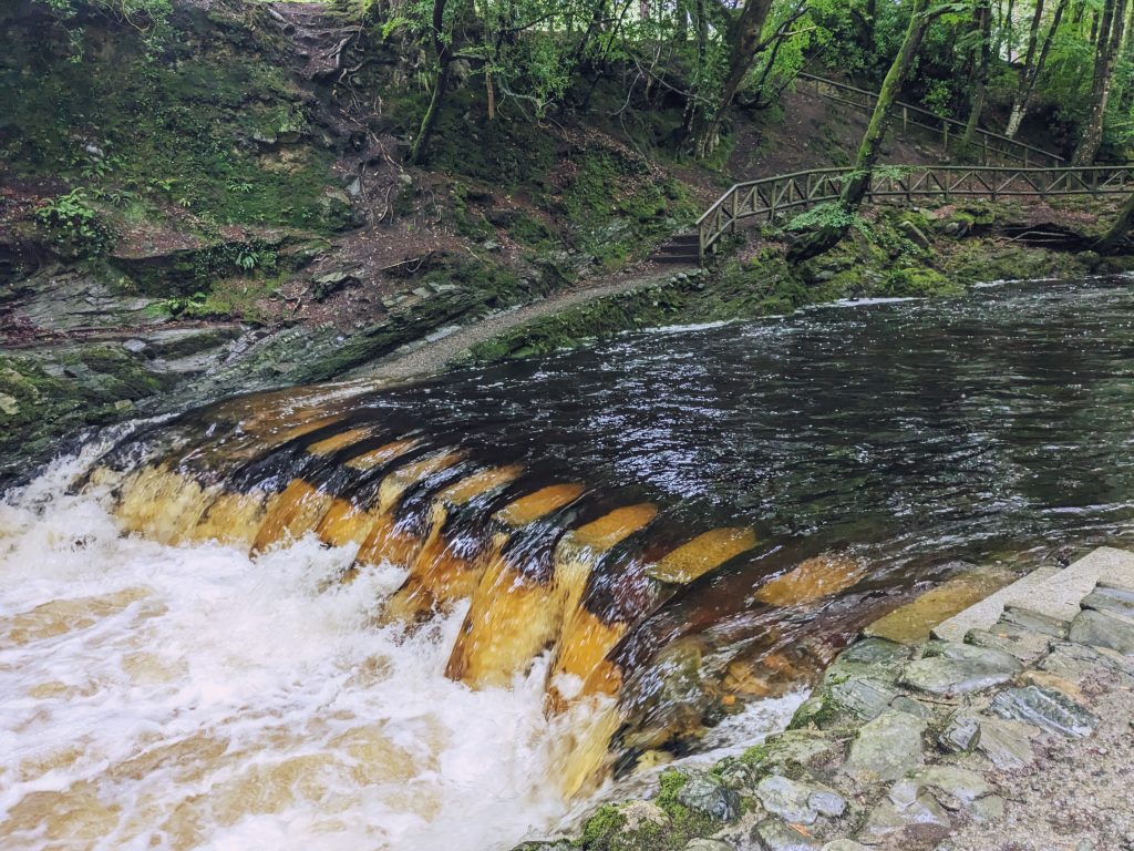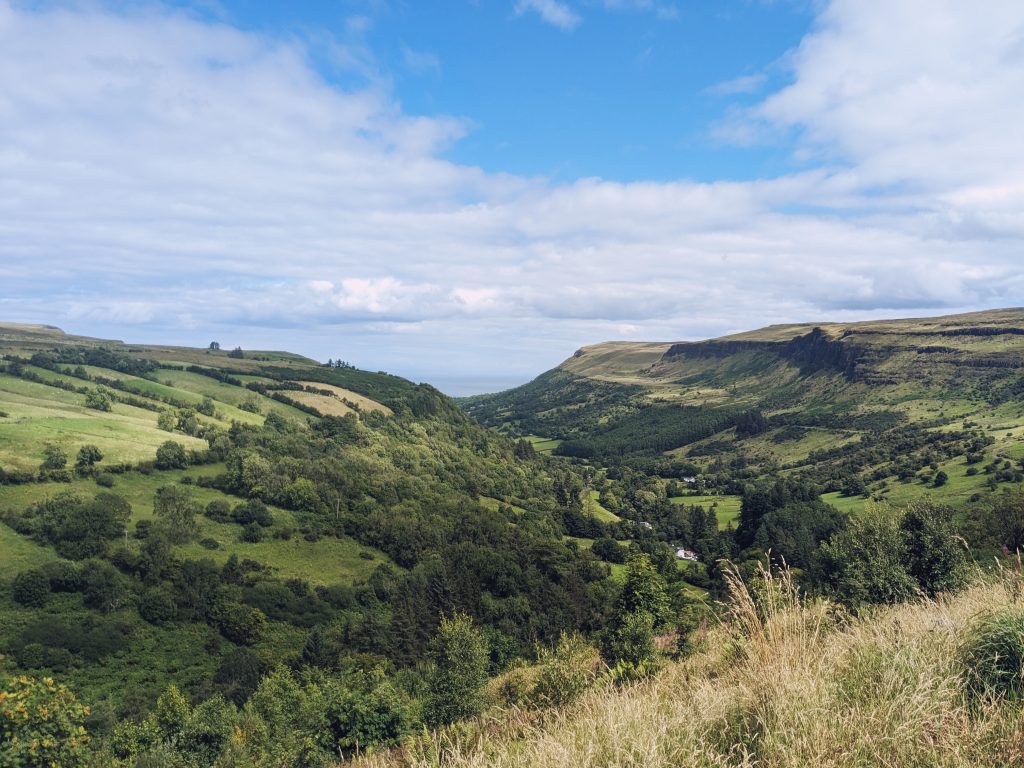Le parc forestier de Glenariff est situé à proximité de la Causeway Coastal Route. Il y est proposé deux circuits de marche que vous pouvez retrouver sur ce document. Je vous conseille de passer par le circuit rouge appelé « Waterfall Trail » d’environ 3 km, il y a un important dénivelé mais vous pourrez longer les cours d’eau et y voir de magnifiques cascades.
