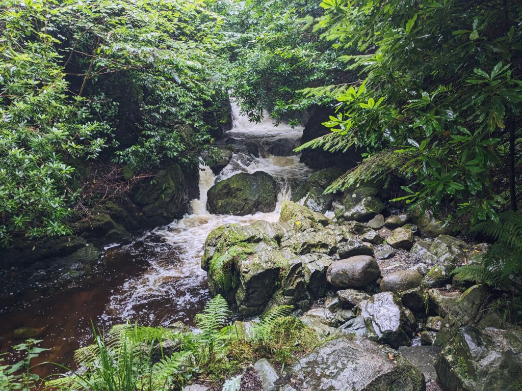 Le parc forestier de Tollymore est situé à proximité de Newcastle. Il y est proposé quatre circuits de marche que vous pouvez retrouver sur ce document ou bien sur la carte qui vous sera remise à l’entrée du parc. Je vous conseille de passer par le circuit rouge appelé « River Trail » de 5,2 km. Vous pourrez y voir les stepping stones, de petites cascades et traverser le pont Altavaddy.
